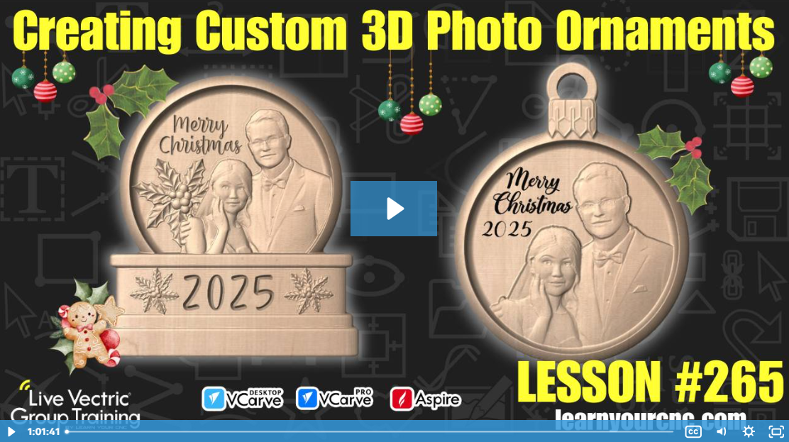π In this lesson, we dive into the holiday spirit by creating custom 3D ornaments and snow globes using a mix of free clip art and cutting-edge technology! You will learn how to use Vectric's new AI-powered Easy Create tool to turn a standard family or pet photo into a detailed 3D model. We walk through the process of assembling these models inside VCarve or Aspire, covering essential techniques like component clipping, adjusting base heights, and a "pro tip" for fading 3D edges using the multiply combined mode. Whether you're making a wedding keepsake or a festive gift, this project is beginner-friendly and perfect for anyone using VCarve Desktop, Pro, or Aspire!