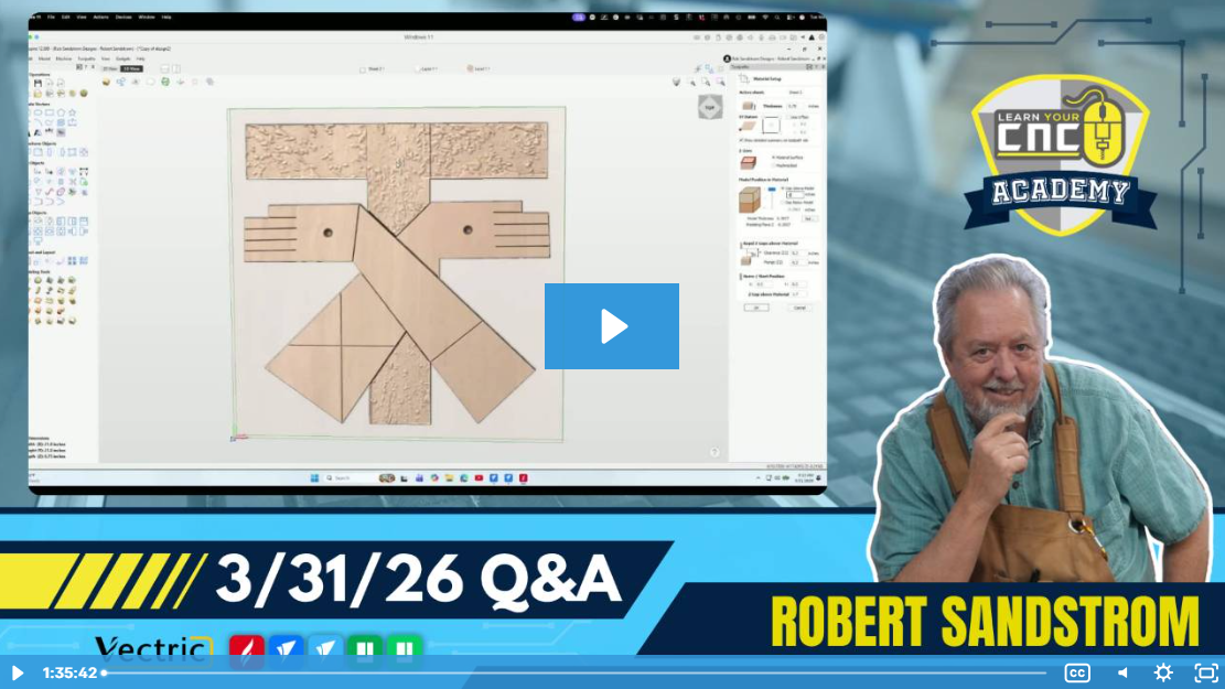 Mar 31, 2026Note: You must be a member of the Learn Your CNC Academy Community to watch this replay. Benefits include weekly Q&A Meetups, weekly project lessons, monthly CNC challenges, an active community of Vectric users, past replay lessons & project files, and so much more!