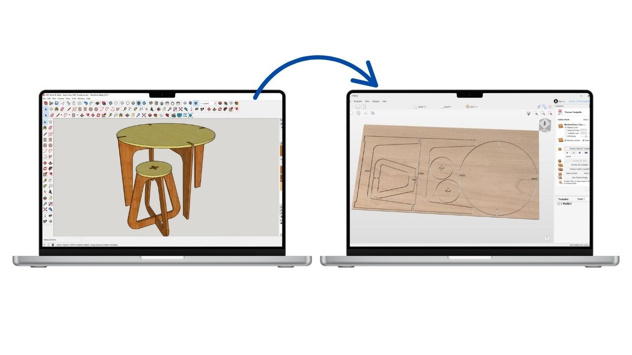 But what many don’t know is that Kyle has been using SketchUp even longer than Vectric. Since 2008, he’s used SketchUp for everything from CNC furniture and woodworking designs to construction layouts and 3D printed models. Over the years, Kyle has mastered the workflow from SketchUp design to CNC-ready toolpaths inside Vectric.