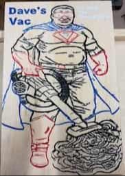 "I took a picture i had of a friend of mine who owns a vacuum business. and told AI to give the picture a super hero look, holding a vacuum and sucking up the competition. i then sketch carved it and painted it.  "